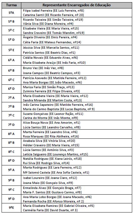 Representantes dos Encarregados de Educação por turma